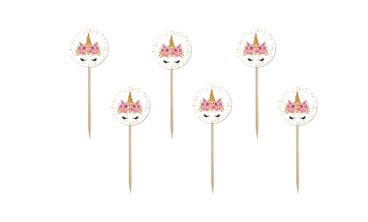 • Komplet zawiera 6 sztuk dekoracji z motywem jednorożca.