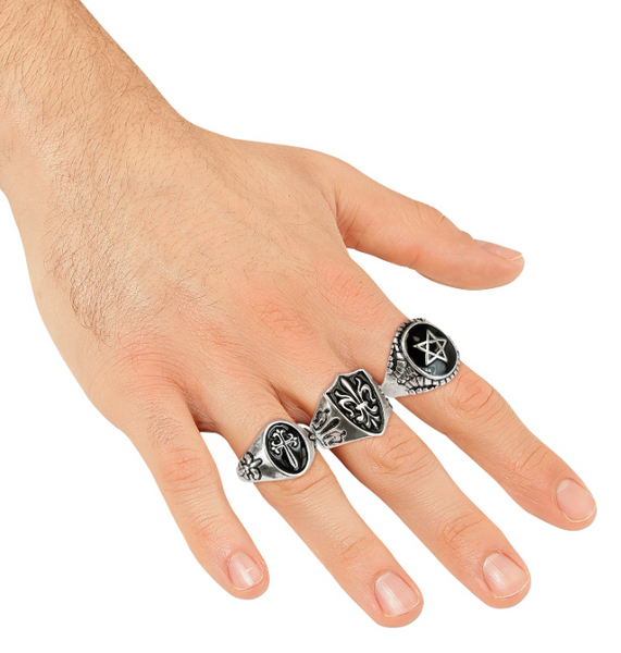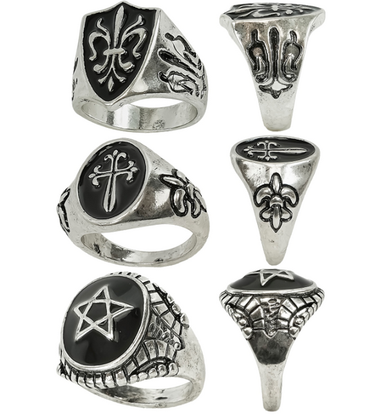 - Zestaw trzech pierścionków w stylu gotyckim.