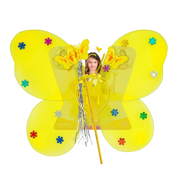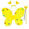 Wymiary zestawu: Skrzydełka: długość ok. 35 cm, szerokość ok. 50 cm, Różdżka: długość ok. 35 cm, Opaska: szerokość zewnętrzna ok. 33 cm.