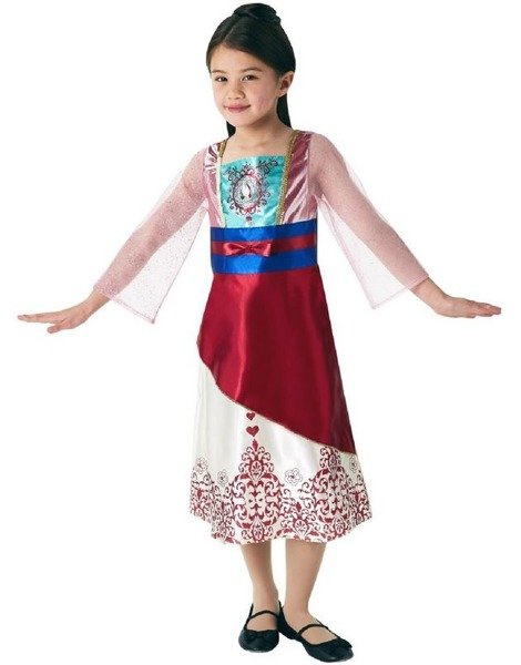 Góra sukienki z tiulowymi rękawkami, ozdobiona aplikacją z wizerunkiem księżniczki Mulan.