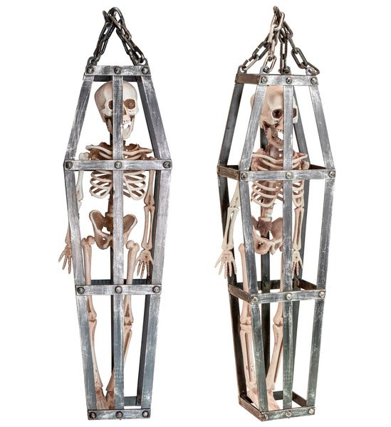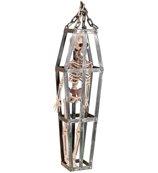 Dekoracja halloweenowa wisząca - kościotrup w klatce.