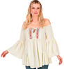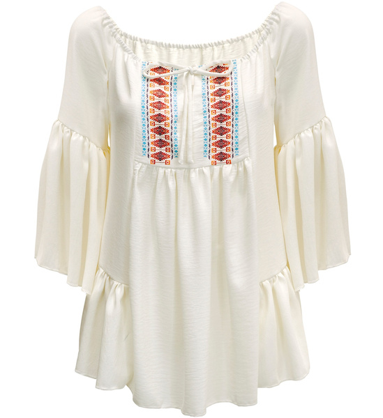 Produkt w kremowym kolorze ze zdobieniami przy dekolcie.