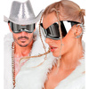 Okulary w kolorze srebrnym.