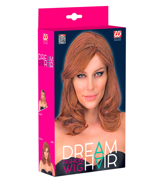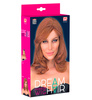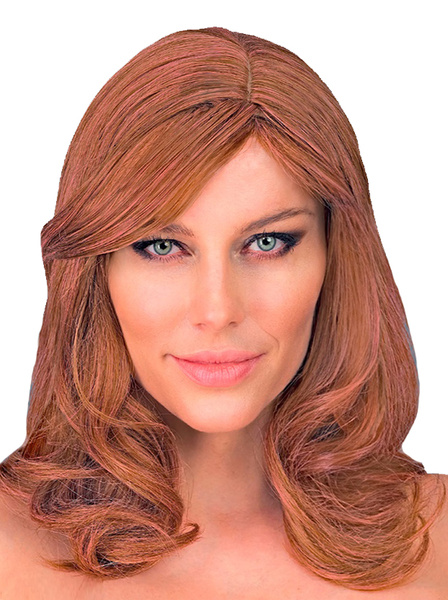 Peruka damska w kolorze brązowym z różowymi pasemkami.