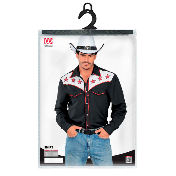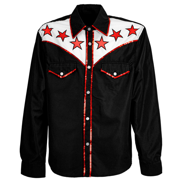 Koszula w kolorze czarnym, zdobiona białą wstawką z czerwonymi gwiazdami oraz cekinami.