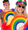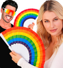 - Materiał wachlarza ozdobiony pełnym spektrum kolorów tęczy.