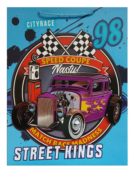 TORBA PREZENTOWA WYŚCIGI NIEBIESKA 31 X 40 X 12 CM