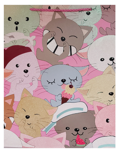 Torba prezentowa zdobiona nadrukiem zwierzątek.