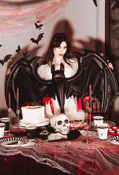 Balon foliowy Nietoperz w kolorze czarnym z czerwonymi akcentami.