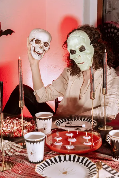 - Maska w formie szczegółowo odwzorowanej czaszki.