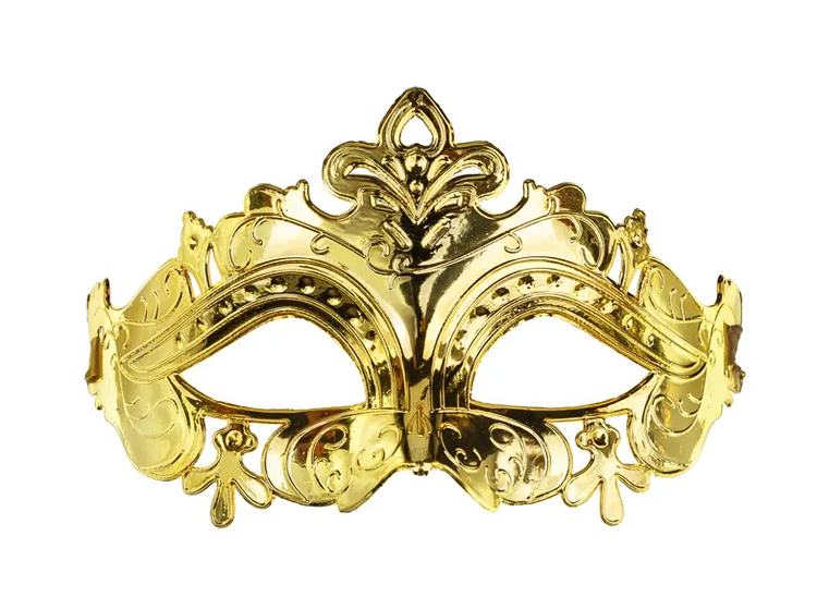 Dodaj swojej stylizacji odrobinę tajemniczości i elegancji dzięki tej klasycznej masce weneckiej w złotym kolorze. Jej staranne wykończenie sprawia, że każdy detal przyciąga wzrok, a głęboki złoty odcień nadaje jej luksusowego charakteru. Maska ma wymiary około 17 x 9 cm, dzięki czemu doskonale dopasowuje się do twarzy, zapewniając komfort noszenia podczas całego wydarzenia. Jest wiązana na wstążkę, co pozwala łatwo ją dopasować i stabilnie utrzymać na miejscu, niezależnie od tego, czy uczestniczysz w balu maskowym, karnawale czy imprezie tematycznej.
