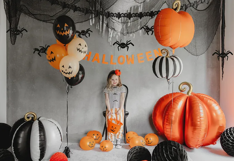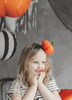 - Opaska w kolorze czarnym z umieszczoną z boku pluszową dynią w barwie pomarańczu.
