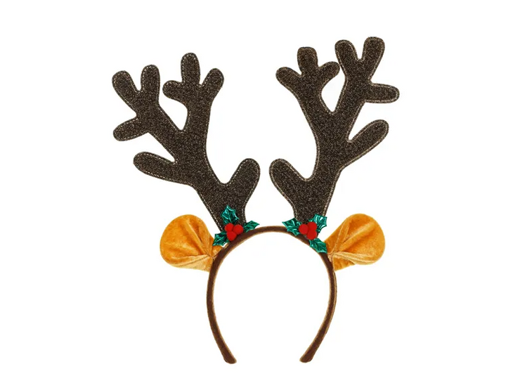 - Brązowa opaska z dużymi rogami renifera oraz puszystymi uszami.