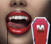 Białe zęby zdobione wzorem z efektem czerwonej krwi.
