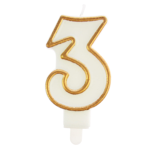 Świeczka Urodzinowa Cyfra „3” – idealna do tworzenia zestawów liczbowych z innymi cyframi.