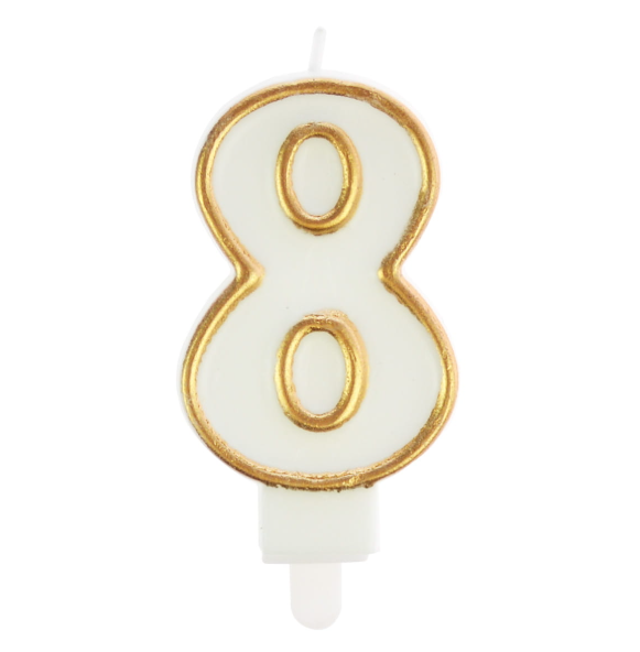 Świeczka Urodzinowa Cyfra „8” – świetna jako samodzielna ozdoba lub w zestawie z innymi cyframi.