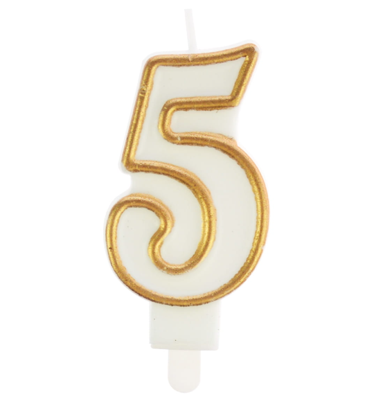 Świeczka Urodzinowa Cyfra „5” – idealna do samodzielnego użycia lub w połączeniu z innymi cyframi.