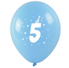 - Zestaw zawiera 3 balony z białym nadrukiem cyfry 5, widocznym po obu stronach.
