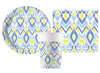 Zestaw z wzorem etnicznym w niebiesko-żółtej kolorystyce.