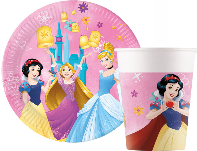 Zastawa jednorazowa z motywem księżniczek Disneya.