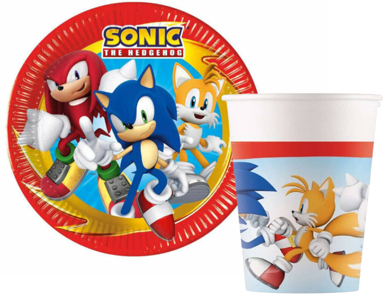 Zastawa jednorazowa z motywem z bajki Sonic.