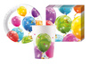 Zastawa jednorazowa z motywem kolorowych balonów.