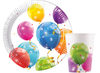 Zastawa jednorazowa z motywem kolorowych balonów.