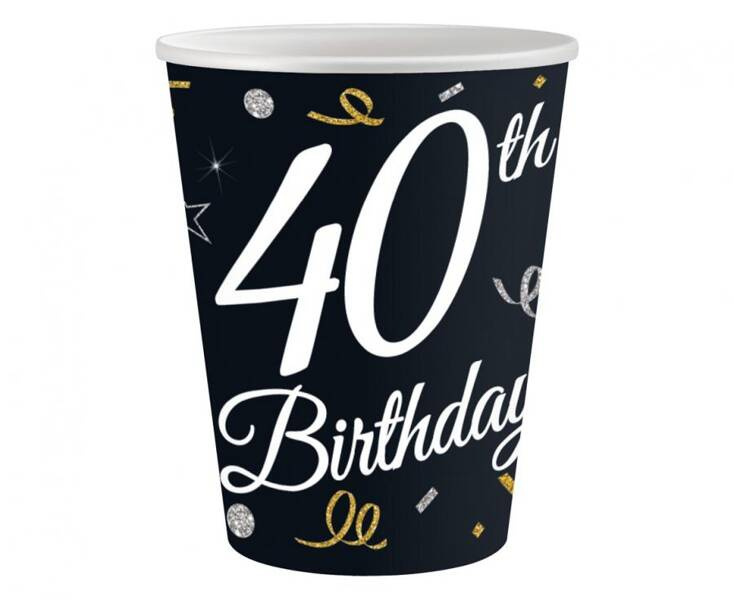 KUBECZKI PAPIEROWE 40TH BIRTHDAY CZARNE 250 ML 6 SZTCena: 2,76 zł / szt.