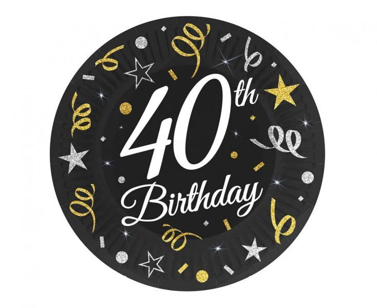 TALERZYKI PAPIEROWE 18 cm 40 URODZINY 6 szt.Cena: 5,33 zł / szt.