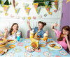 Zastawa jednorazowa z nadrukiem wesołych pączków.
