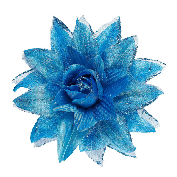 Spinka w kształcie kwiatu lotosu. Kolor: niebieski z brokatowym wykończeniem Starannie wykonana.