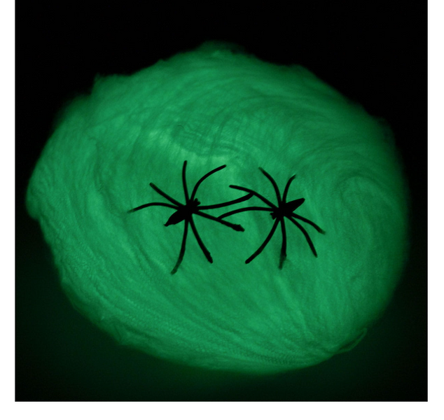 - Świecąca w ciemności pajęczyna, która po naświetleniu emituje zielonkawy blask.