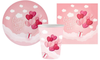 Zastawa jednorazowa z kolekcji "Love is in the air" w kolorze różowym z nadrukiem serduszek.