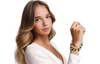 - Zestaw zawiera trzy bransoletki na elastycznej gumce.