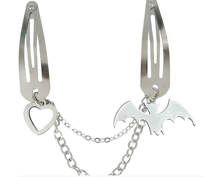 - Ozdoby: nietoperz przy jednej spince oraz serduszko przy drugiej.