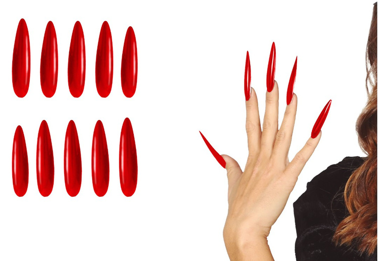 Zestaw sztucznych paznokci w kolorze czerwonym.