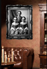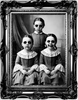 - Naklejka przedstawiająca trzy upiorne dziewczynki w ozdobnej ramie.