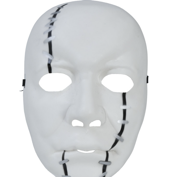 - maska wykonana z tworzywa sztucznego mocowana na elastycznej czarnej gumce,