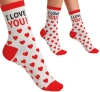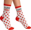 Skarpetki w kolorze białym z czerwonymi serduszkami.