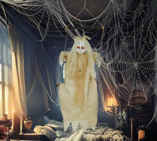 Dekoracja interaktywna dziewczynka wisząca na huśtawce.