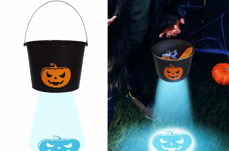 Wiaderko halloweenowe z podświetlaną podstawą.