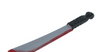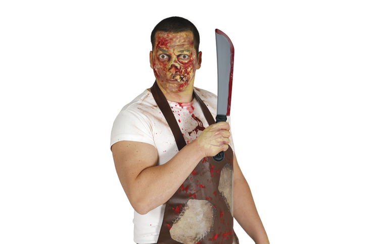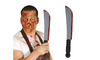 posiada czarną rączkę, ostrze szare oraz plamy krwi.