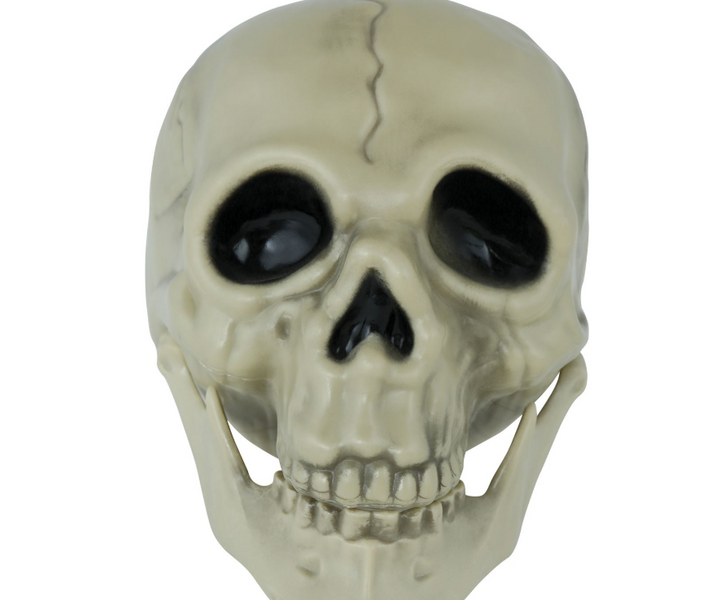 Dekoracyjna czaszka wykonana z trwałego tworzywa.