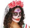 Opaska z welonem, ozdobiona kwiatami które są poplamione imitacją krwi.