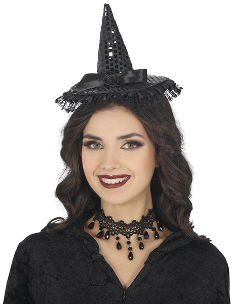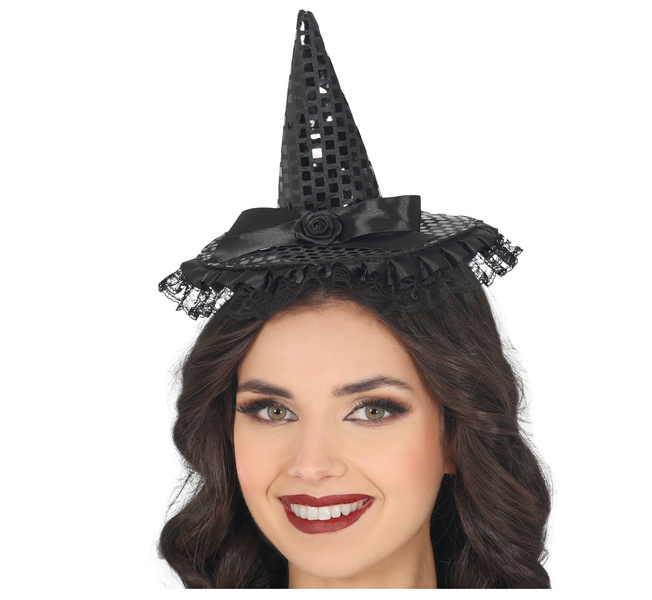 Kolor: czarny, ozdobiony cekinami, kokardką.
