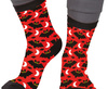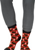 Czerwone skarpetki z nadrukiem nietoperzy i księżyca.