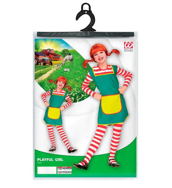 Do sukienki doszyta jest bluzka w biało-czerwone paski.