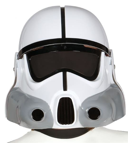 Kask zachowany w odcieniach bieli, czerni i szarości.