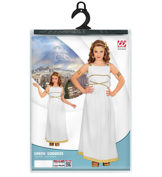 Suknia w kolorze białym ze złotymi zdobieniami i doczepianą pelerynką.