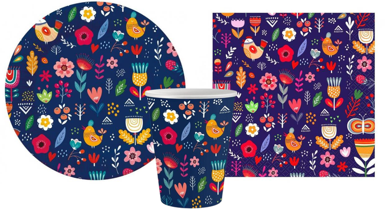 Zastawa jednorazowa z kolekcji Summer- Have fun z nadrukiem kwiatków.